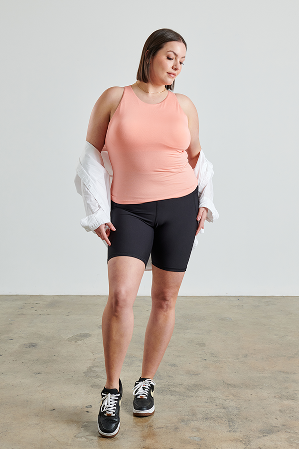 "Better than my SKIMS!" At least, that's what our model told us at the photoshoot, and who are we to disagree?! Never worry about finding a racerback bra to work with this high neck tank - it's got one built-in! Our Frankly Signature Built-In Bra has the feel of a bralette with the support of a sports bra. Plus, this top is full length and perfect for layering.